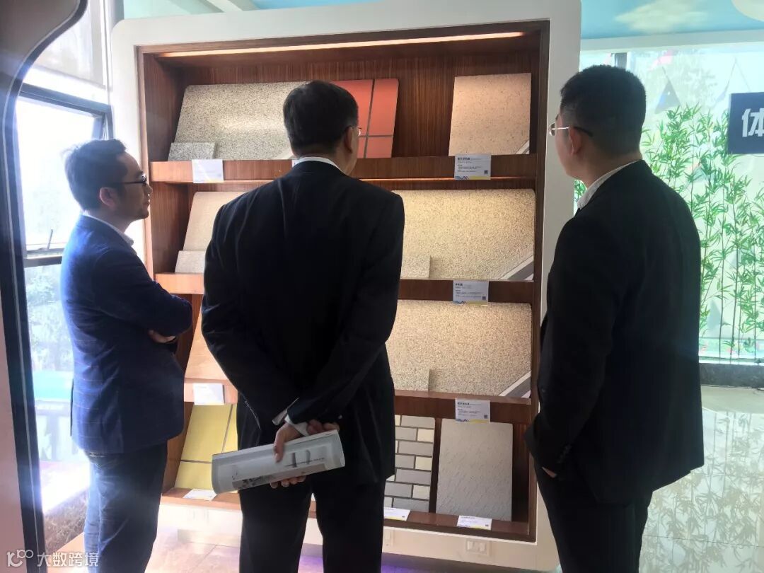 我司对于韩会长的到来表示感谢和热烈欢迎。并由一体板事业部副总经理和地产商务部部长陪同参观美涂士工程成品展示,向韩会长详细介绍了公司的研发力量、企业产品、工程案例以及发展历程。