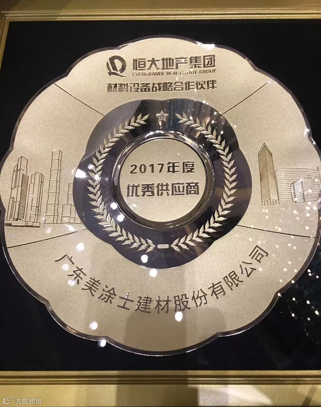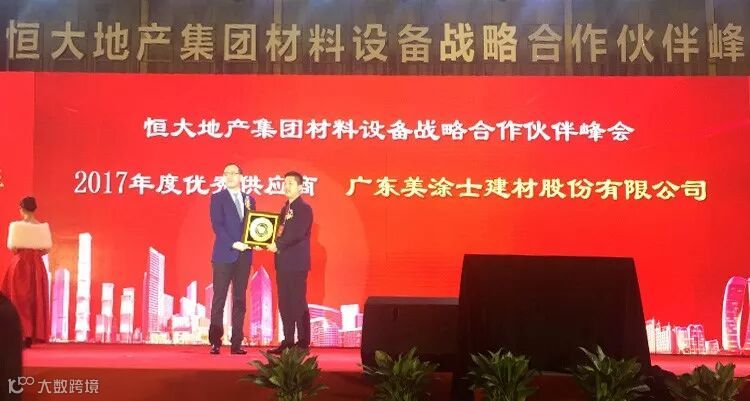 恒大作为我国房地产的龙头企业,多次荣登中国房地产企业10强榜单,一直领跑中国房地产市场。连续三次荣获地产龙头恒大地产集团的肯定,再一次彰显了美涂士强大的品牌实力以及业界影响力!