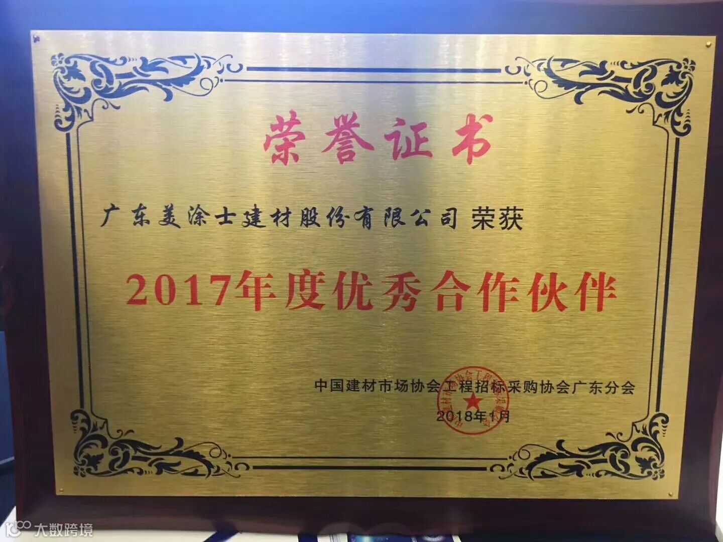 美涂士荣获2017年优秀合作伙伴奖