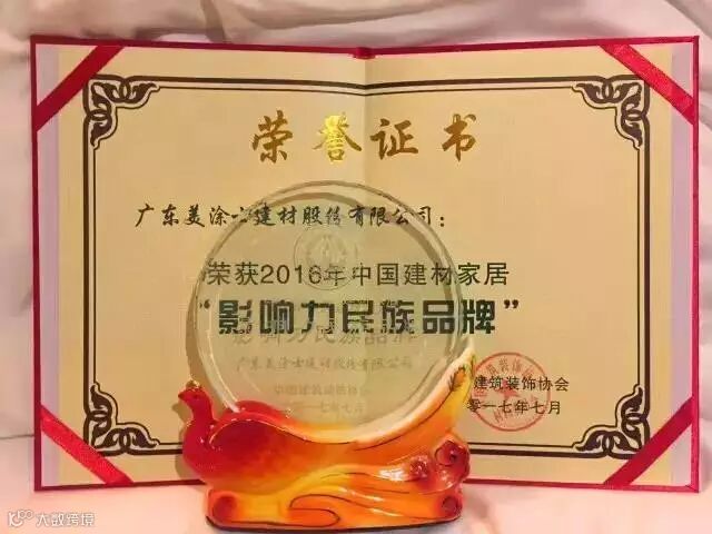 美涂士荣获“2016年中国建材家居影响力民族品牌”