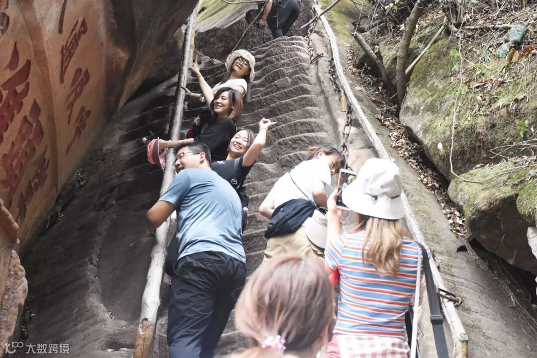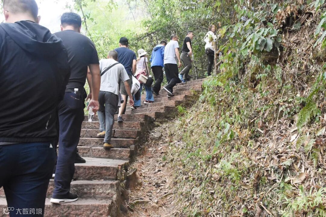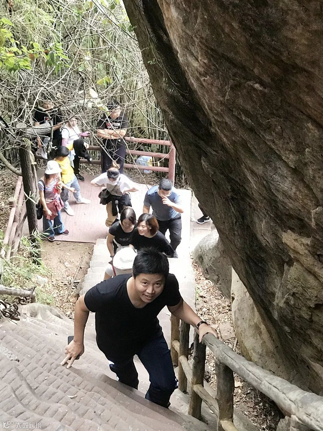上山的阶梯路是全程最艰难的部分,快节奏地爬山让习惯平路行走的我们明显感到有些吃力,陡峭的路途让大家不一会儿就开始喘粗气,汗水也浸湿了身上的衣裳。尽管山路陡峭,崎岖难行,也打击不了大家的热情。流着汗,喘着气,时而畅谈工作期望,时而展望人生理想,时而也谈谈家庭生活趣事,在和谐、愉快的氛围中向山顶迈进。