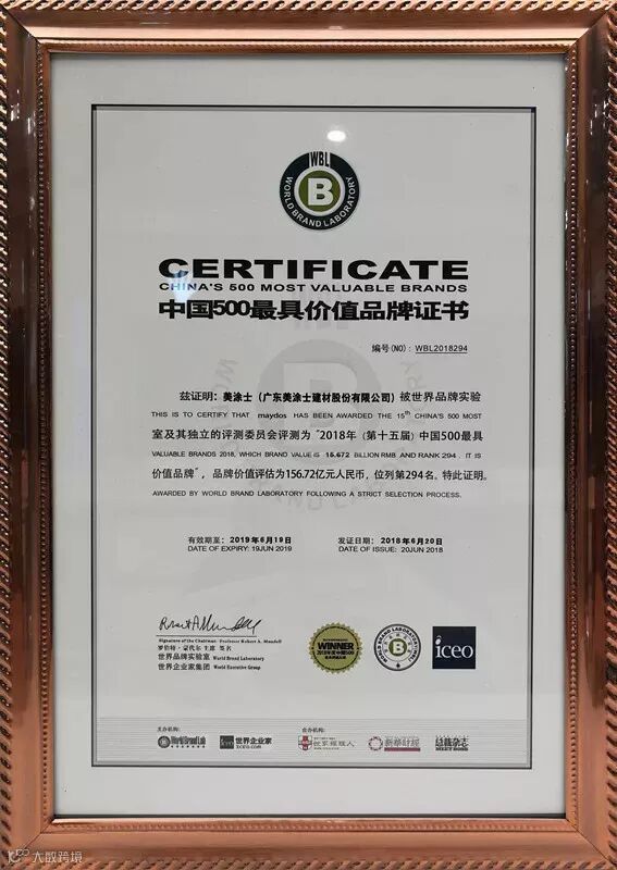 而在前不久,在诺贝尔奖得主领衔的世界品牌实验室发布“中国500最具价值品牌”分析报告中,美涂士以156.72亿元品牌价值上榜。 “ ‘中国制造’已转变为‘中国创造’,科技、服务的无形资产占据企业越来越多的位置!” 英国牛津大学(OXFORD)赛德商学院营销学教授斯蒂芬·沃格(Stephen Woolgar)表示。