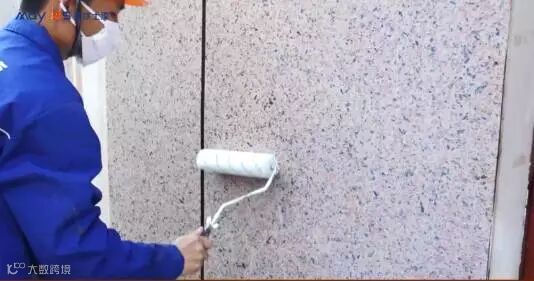 采用滚筒或者喷枪均匀涂刷底漆一遍,目的是防水抗碱、格缝上色。调整底层的渗透性,还可以增加外墙面漆涂层的附着力。