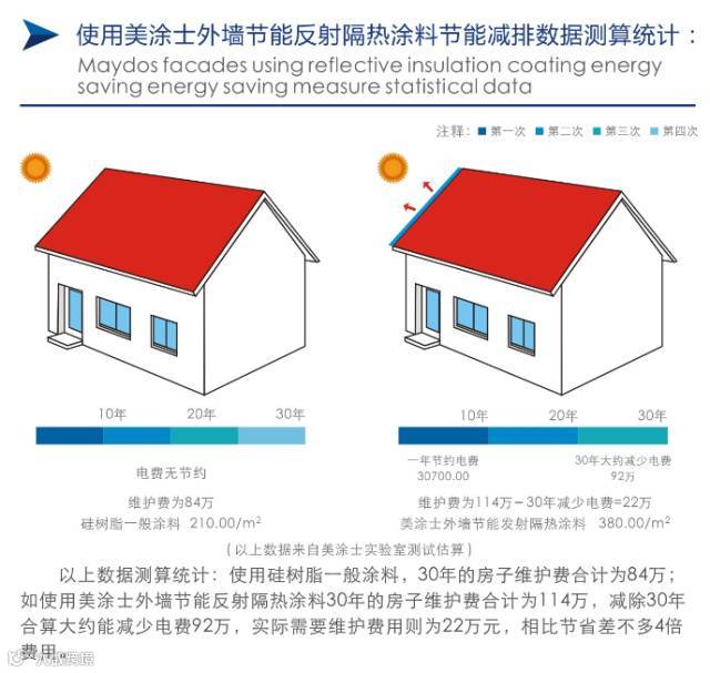 美涂士作为绿色环保的践行者,根据太阳光的光谱分析,和大量现场的考察,强势推出外墙节能反射隔热涂料,该涂料是由最新聚合技术合成的特殊结构改性丙烯酸乳液,及特别添加卓越隔热效果的空心微球配置而成的一种隔热涂料,使产品具有优异热反射系数和半球反射率。本着绿色建筑为居者创造健康、节能居住空间的同时,还具有耐沾污性、耐候性、防水透气性,为墙面带来全方位保护。