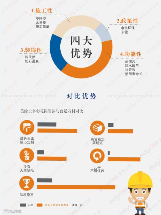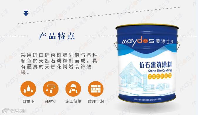 多彩花岗岩漆色彩饱满丰富,独有豪华厚重天然花岗石装饰效果,仿真性强。