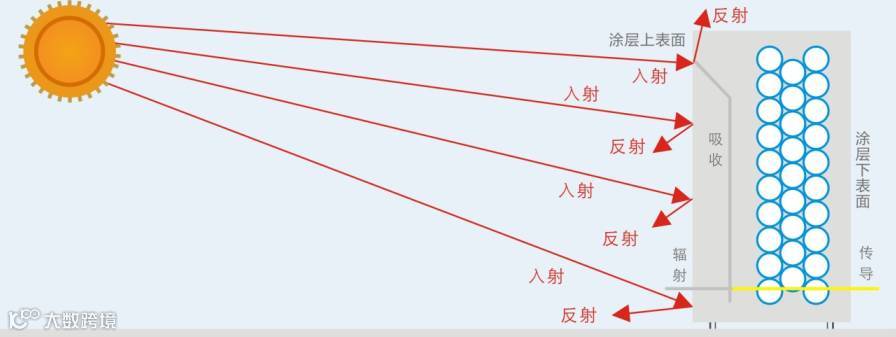 美涂士反射隔热涂料对太阳红外线、可见光和紫外线进行高反射,不让太阳的热量在物体表面进行累积升温,涂层又能自动进行热量辐射散热降温,把物体表面的热量辐射到太空中去,降低物体的温度,即使在阴天和夜晚隔热涂料也能辐射热量降低物体表面温度,隔热涂料三大功效保证了涂刷涂料的物体隔热降温,确保了物体内部空间能保持持久恒温的状态,建筑物、设备上的热反射隔热,降温防晒效果好。