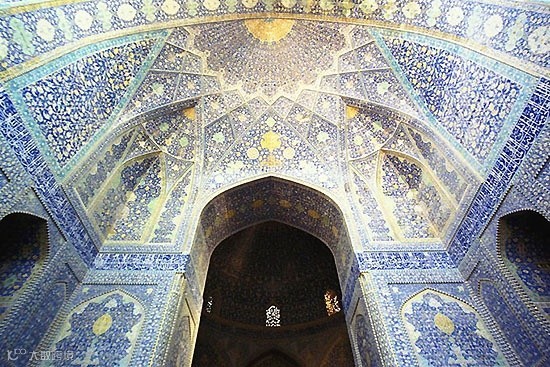 伊玛目清真寺坐落在世界最大的广场——伊玛目广场旁边,清真寺里外均由精美的淡蓝色和黄色瓷砖镶嵌而成。它是一座17世纪建筑,瓷砖的颜色随自然光而改变。主穹顶高54米,点缀着错综复杂的花卉马赛克图案,大门高达30米,堪称是萨法维时期(1502至1772年)建筑风格的最高典范。清真寺偏离广场45°倾斜修建而成,因此得以面向伊斯兰教圣地——麦加。