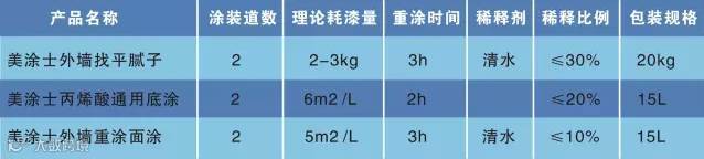 3、美涂士外墙重涂面涂:具有优异的耐候性,保护与装饰效果持久;耐污染性能优异,防霉抗藻,漆膜致密,防水性能及耐水洗刷性能优异。