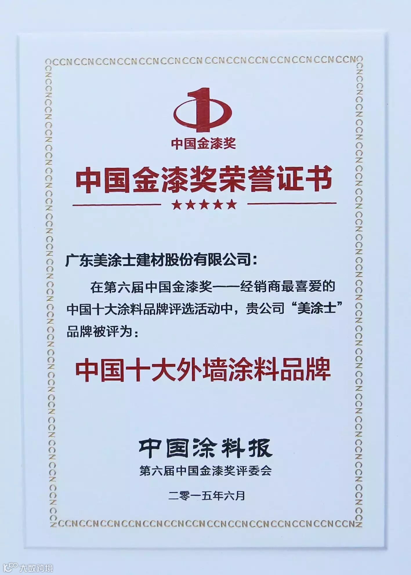 在颁奖典礼上,美涂士漆凭借近年来在工程领域的出色表现,第六次荣获“中国十大外墙涂料品牌”称号。