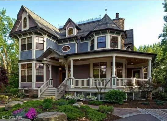 维多利亚风的豪宅,跟同样借鉴影视建筑的都铎风格有点类似,倾斜的高坡屋顶和天窗都是常见的元素。但是比起都铎风,维多利亚风更多的是借用了法式建筑的风格。例如窗户和门框的华丽细节,注重每一个细节就是法式风格的经典做法。
