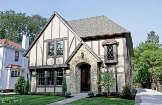 都铎风的豪宅在美国的旧街区很受欢迎,这类风格的特点是令人印象深刻的屋顶轮廓线以及半高的门面。19世纪初引进美国的都铎风很容易就让人联想到欧洲中世纪的英格兰家园。