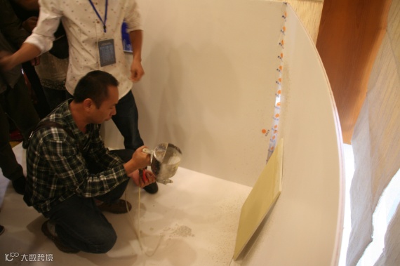 (技术人员现场演示多彩花岗岩漆施工工艺)