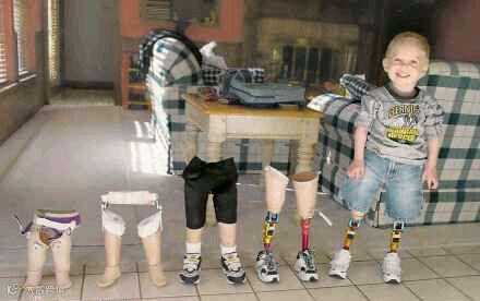美国得克萨斯州7岁男童科迪·麦卡斯兰生下来就先天残疾,两腿没有胫骨。