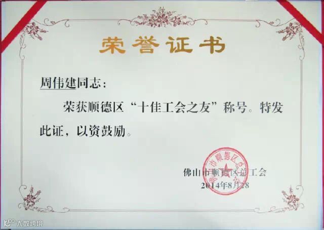 9月19日,顺德区工会第十五次代表大会在区行政大楼会议中心隆重召开,倾听基层职工诉求,共商工会组织建设,打造和谐劳动关系。其中,美涂士公司荣获“十佳企业工会”,周伟建董事长荣获“十佳工会之友”荣誉。