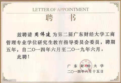 据介绍,周伟建董事长是广东财经大学第一届MBA教指委委员,日前再次被聘请为第二届MBA教指委委员。这是广东财经大学对周董事长作为社会知名管理型人才的认可,也是对美涂士集团知名度的充分肯定。