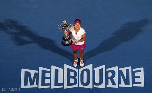 2014年1月26日,墨尔本,2014澳大利亚网球公开赛,李娜夺冠沙滩拍写真。
