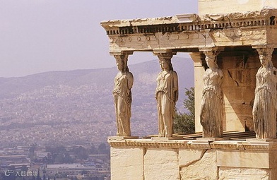 ▲女像柱:雕像柱。最著名的是支撑雅典卫城厄瑞克特翁神庙中的一座门廊的年轻女性的雕像。