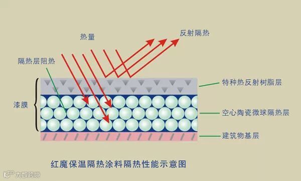 反射型隔热涂料是经过挑选适宜的树脂、金属或金属氧化物颜填料及出产技术来制得高反射率的涂层反射太阳热,以到达隔热的意图。经过将有些光和热反射出去,避免热量经过涂膜传导至室内,导致室内温度升高。