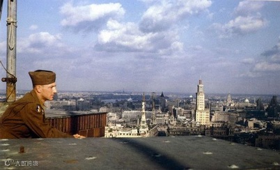 1945年,飞虎队成员在上海国际饭店遥望上海。那个年代,出入境很方便,去香港直接走过去就行了,张爱玲就这么走过去了,据说只要买一张船票就可以直接去美国,不需要什么手续,也不需要什么签证,当时美国跟中国的关系非常好。
