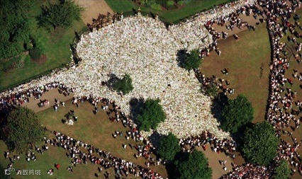 1997年9月,肯辛顿宫外,群众为戴安娜王妃献花。(白色的都是花)