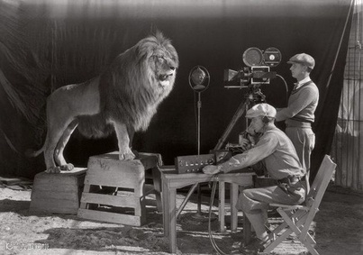 1928年,好莱坞时代的开始,拍摄米高梅片头标志。