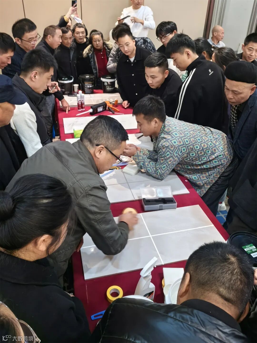 光听不够看,光看不如上手做。活动现场设置了新品实操演示环节,由三林技术老师进行全程示范,在技术老师讲解之后,现场施工师傅纷纷上手体验,都给出了直观评价。大家在交流中提出了很多实际施工中遇到的问题,技术老师也逐一进行了现场解答。