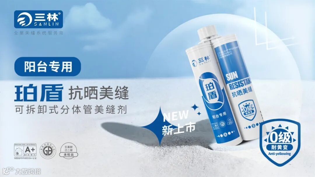 珀盾的核心,是三林自主研发的新型抗晒聚合物。我们在分子结构上做了不黄变设计,让长期日晒不再带来颜色漂移;高附着力,能牢牢抓住瓷砖与石材边缘;高韧性,抵抗冷热交替与微小形变,不易开裂、不易脱落。