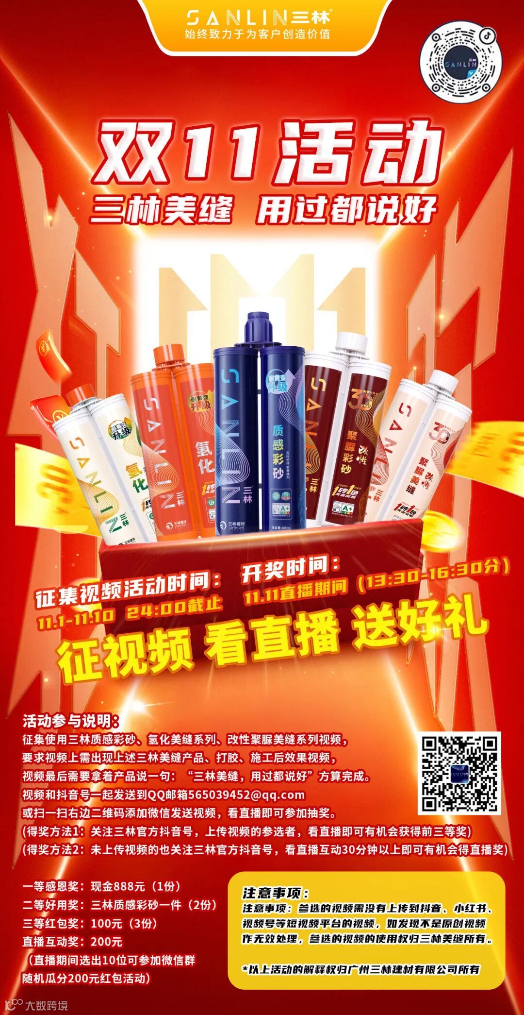 征集对象:如果您使用过三林质感彩砂、氢化美缝系列或者改性聚脲美缝系列,那么这个活动就是为您量身打造的!
