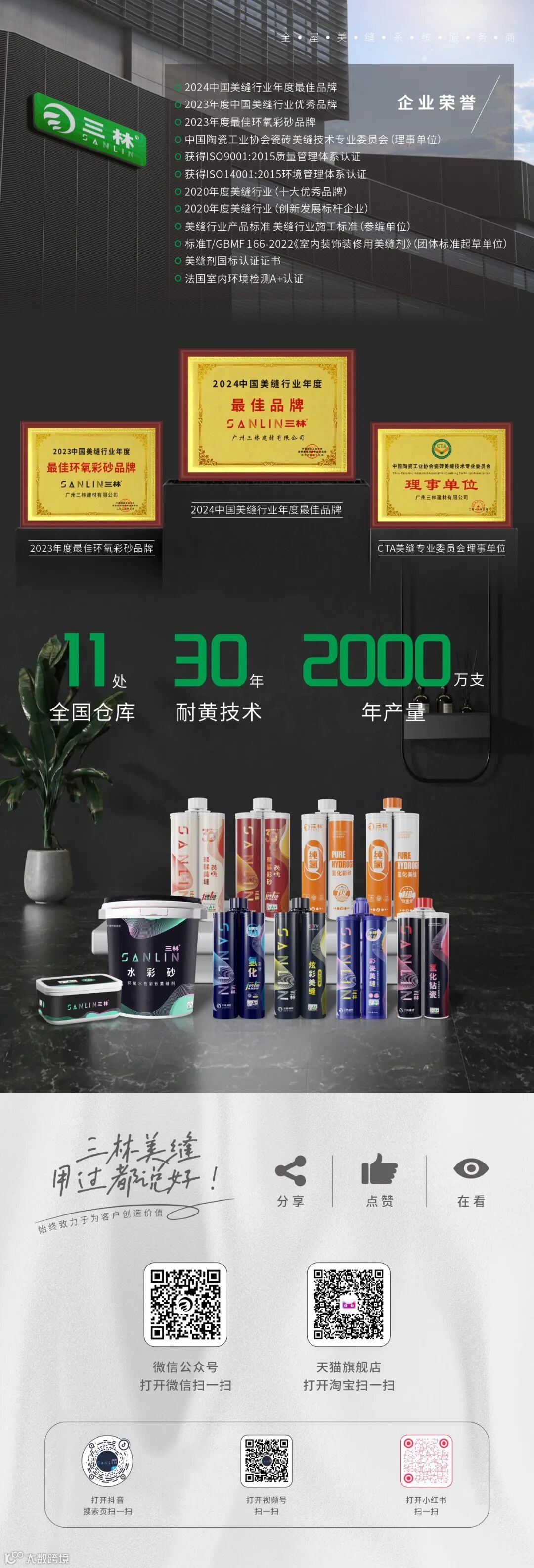 小贴士:选填缝材料时,别只看当下颜色,耐黄变等级才是持久美观的关键。三林水彩砂的“一级抗黄”实力,或许能给你多一份安心选择。