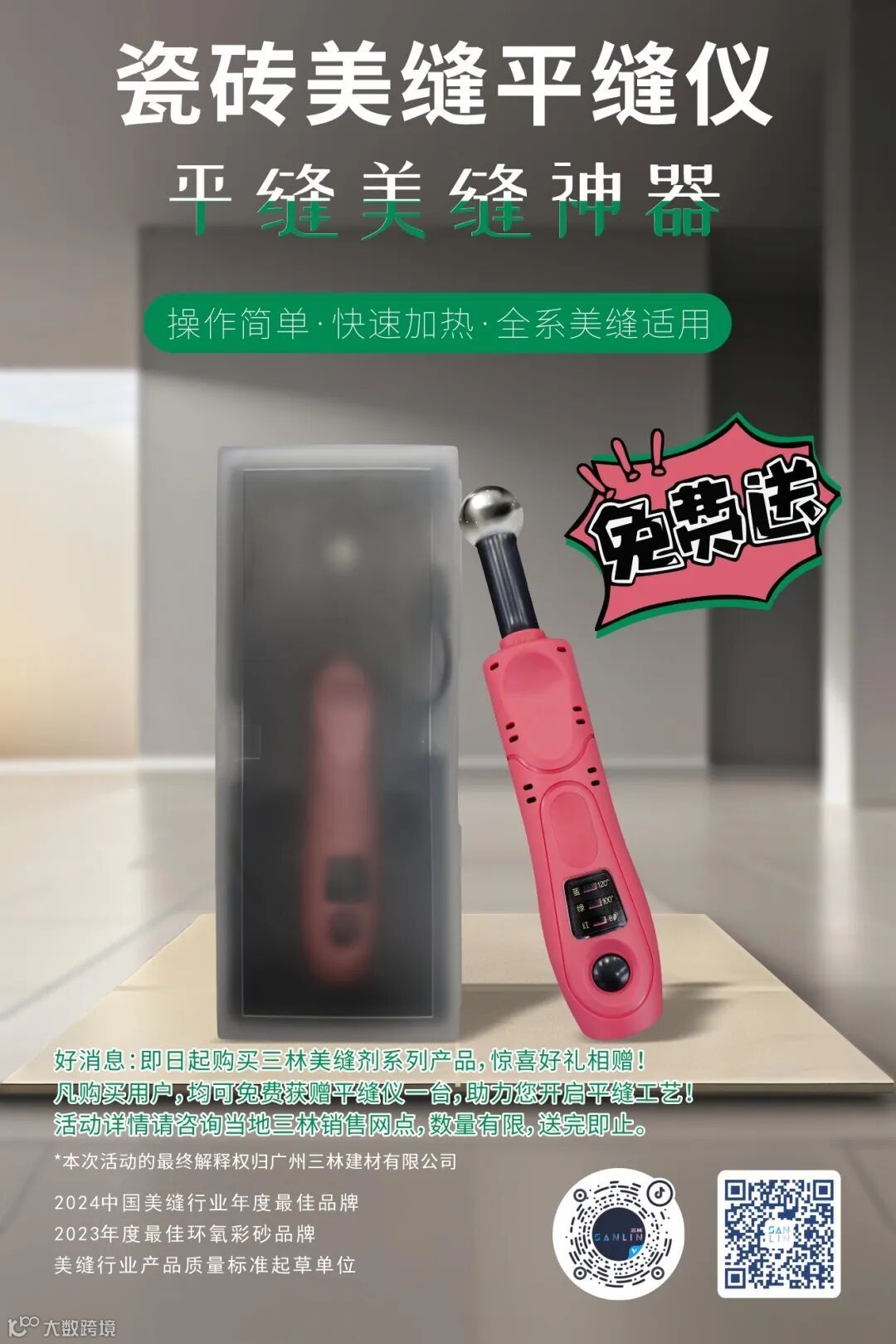 这次活动的平缝仪数量有限,送完即止。如果你正计划给家里做美缝,想趁着周末自己动手改造家居;又或者觉得家里旧美缝已经影响美观,想给它来个翻新,千万别错过这个好机会。拥有这台平缝仪,不仅能省下请工人的费用,还能轻松体验到自己动手打造美好家居的乐趣。活动详情可以咨询当地三林销售网点,赶紧行动起来,让家里的瓷砖缝隙告别粗糙,展现精致质感吧!