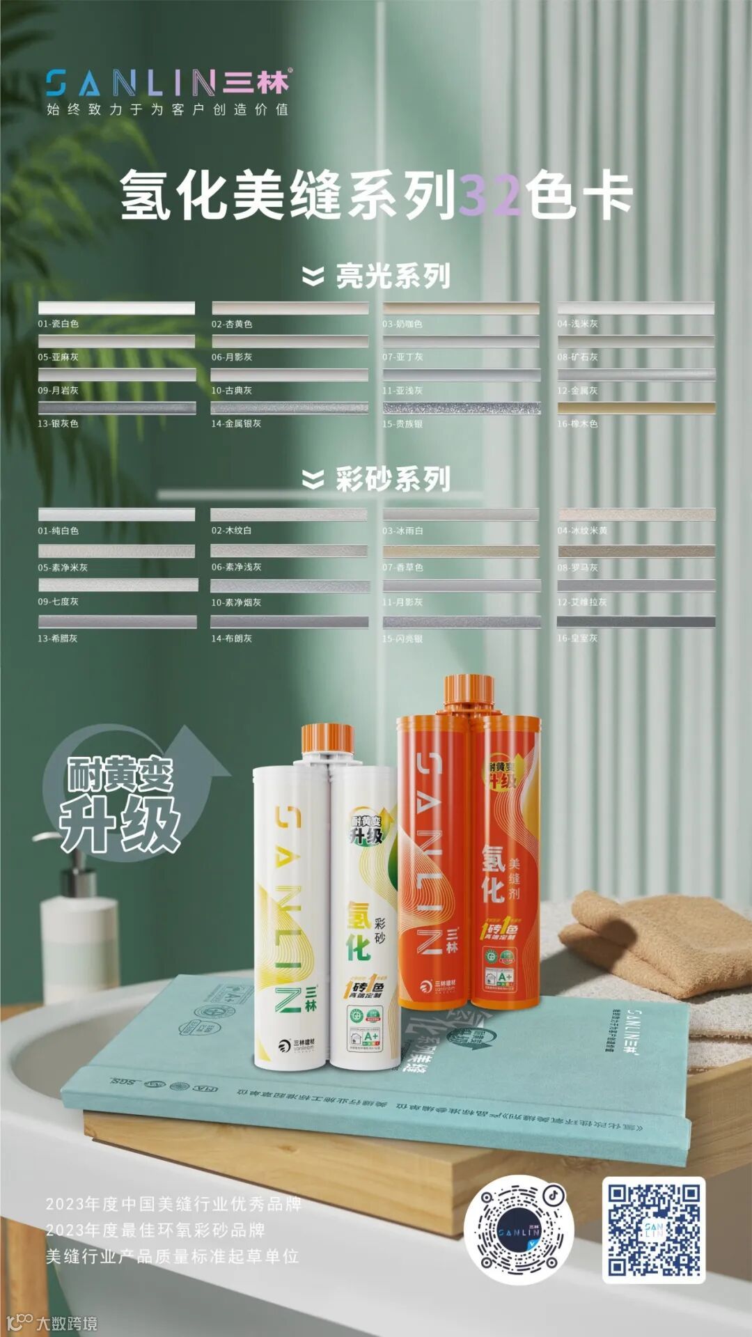 氢化美缝系列32色卡,以其丰富的色彩、恒新的釉彩品质,在家居美学与实用价值的道路上不断探索前行。它不仅仅是一款美缝产品,更是您实现家居梦想、提升生活品质的得力伙伴,期待为您的家居空间开启一段绚丽多彩且持久亮丽的美学之旅。