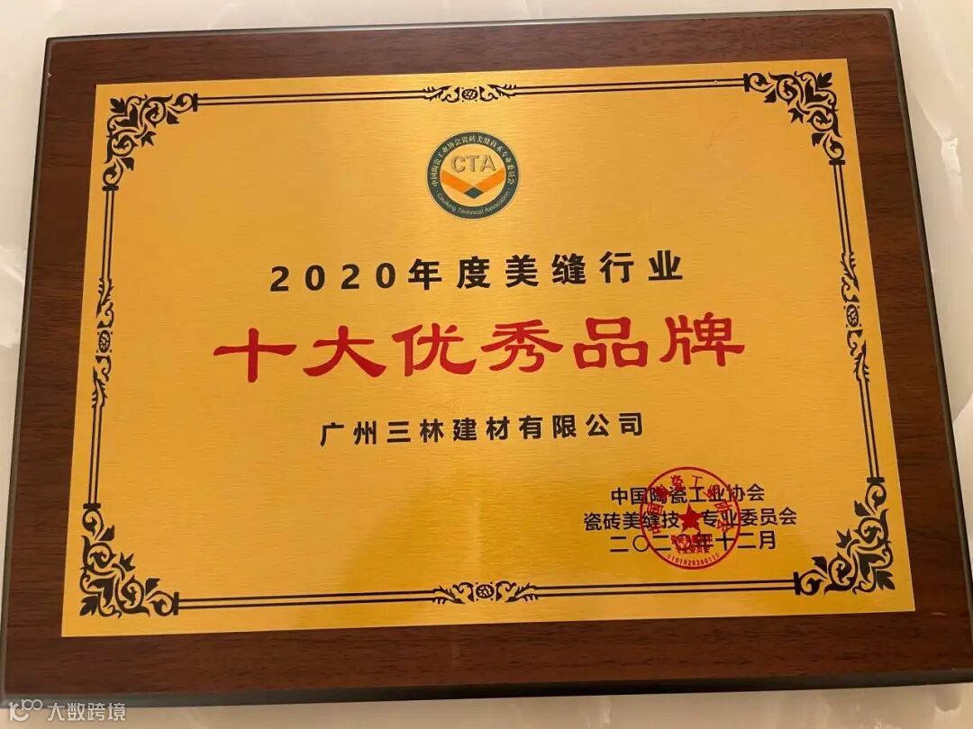 三林建材以良好的产品口碑和强大的市场影响力,在中陶协美缝技术专委会举办的“美缝十大品牌”票选中,经由协会严格审核评选以及几十万用户的认可与支持,三林荣获美缝行业十大优秀品牌!