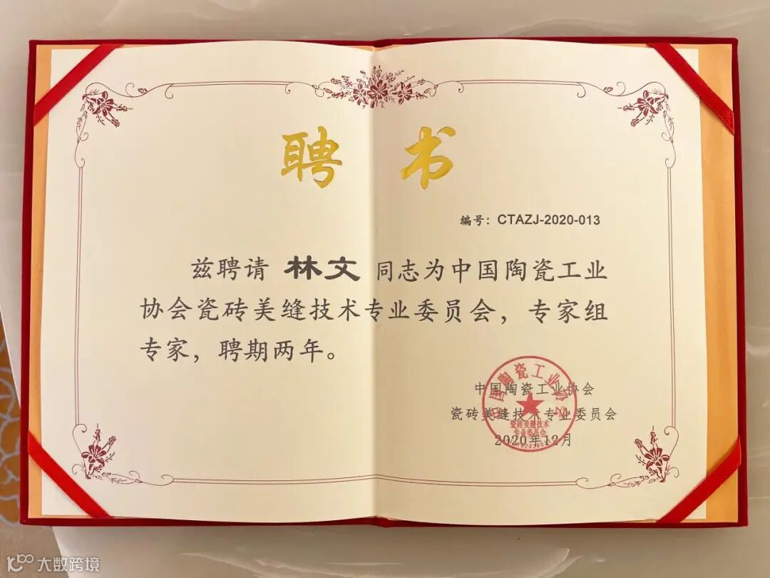 本次年会上,还特聘请三林建材林总为中国陶瓷工业协会瓷砖美缝技术专业委员会,专家组专家,三林将为美缝行业健康发展、产品技术更新、施工技术交流等贡献自己的力量。