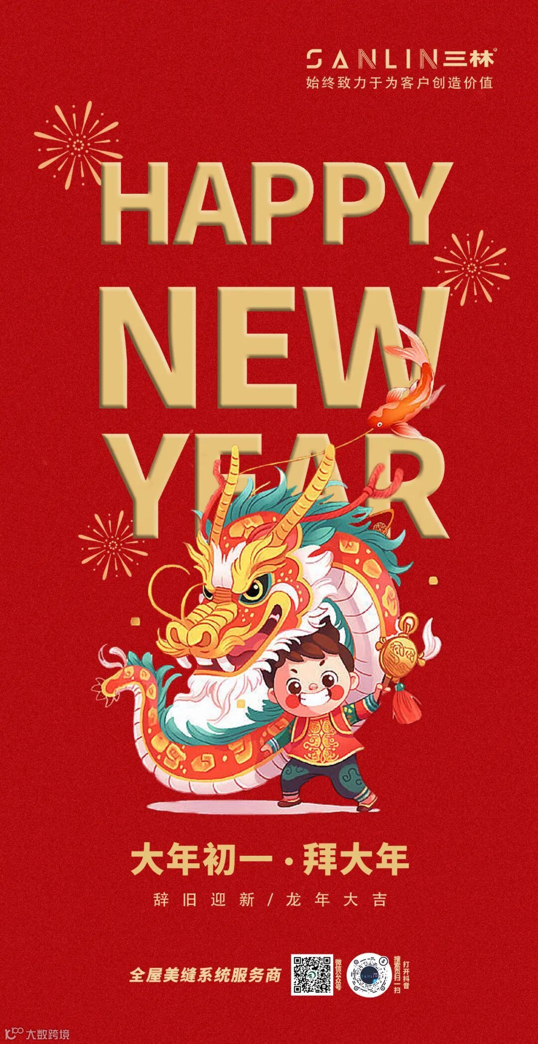 挂上红色的灯笼,贴上喜庆的对联,每一个家庭都弥漫着浓浓的年味。感谢您一直以来对三林的信任与支持,龙年快乐!愿您和家人在新的一年里,笑声连连、好运不断!