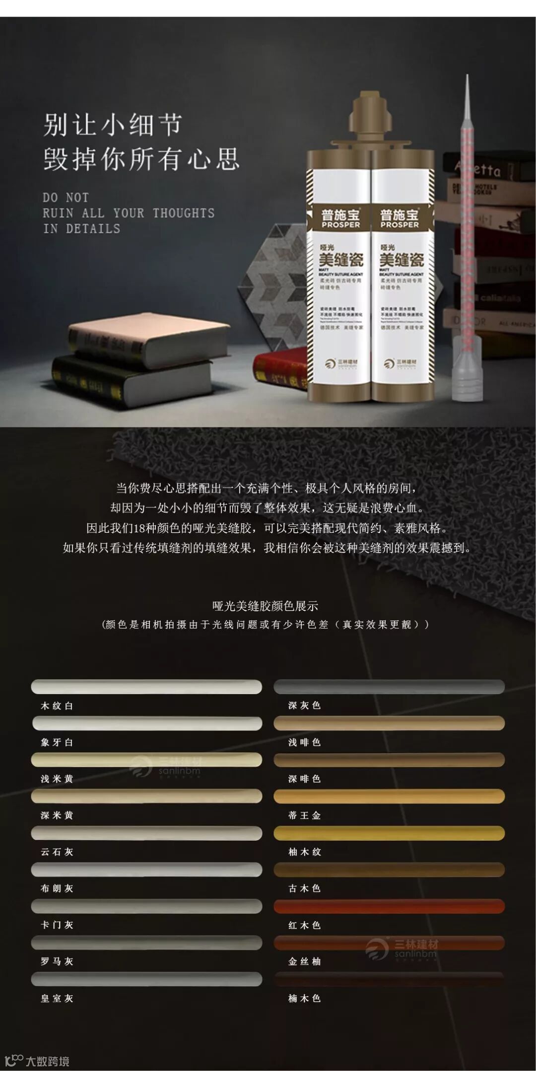 导读:当你费尽心思搭配出一个充满个性、极具个人风格的房间,却因为一处小小的细节而毁了整体效果,这无疑是浪费心血。因此我们的哑光美缝胶,可以完美搭配现代简约、亲近自然、素雅风格。我相信你会被这种美缝剂的效果震