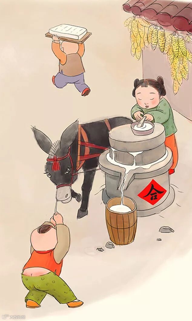 旧时民谚道:“腊月二十五,推磨做豆腐”。