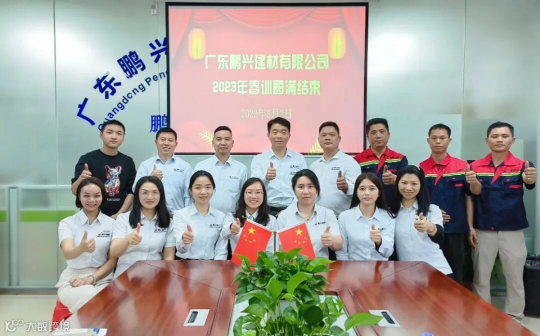 至此,广东鹏兴建材有限公司2023年春季培训会圆满落下帷幕,我们将继续以创新创效增值为核心,从优化工作流程、提升公司运行效率、加大与上下游合作伙伴的合作深度等方面着手,积极推进接下来一年的工作。争取迈向新的台阶,取得新的成就。