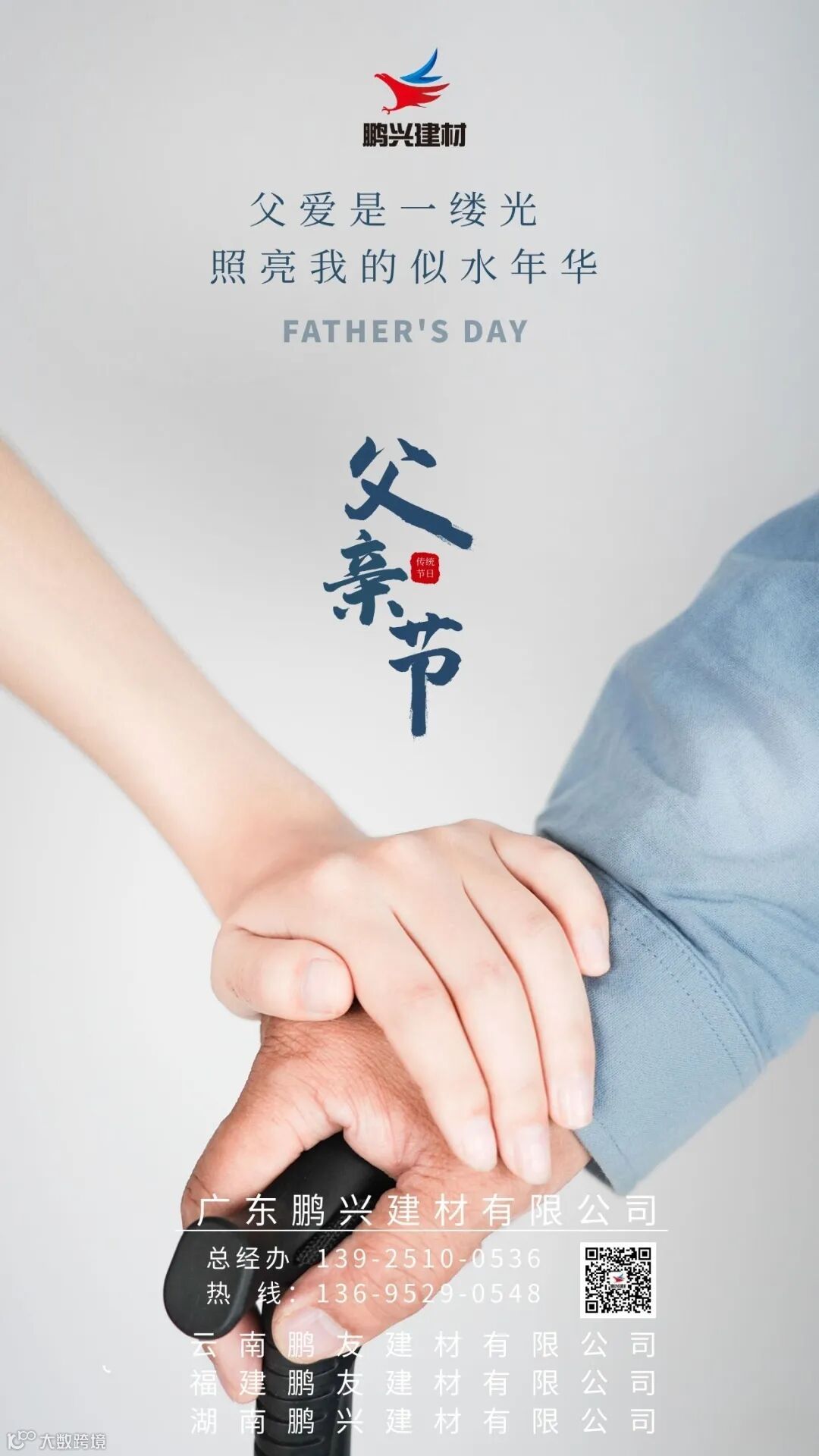 在这个特别的日子,广东鹏兴建材有限公司及旗下各分公司全体同仁,祝愿天下的爸爸们:父亲节快乐!身体健康!