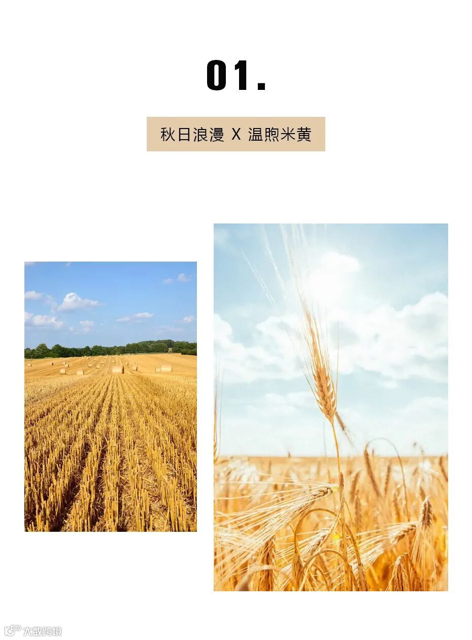 金秋十月,暖色系当道,不同的暖色参差错落,形成一幅至美画卷,给人以温暖的视觉感。