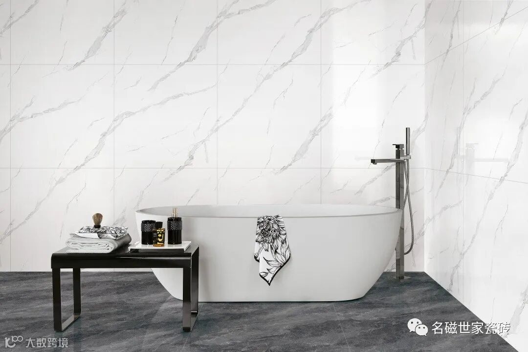 瓷砖应用在卫浴间中,滤去了空间中的浮华,流露出简约之美,无限自由连纹,整体看起来更清爽,舒适。