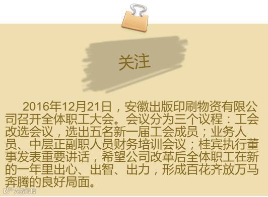 导读:点击上面蓝字关注安徽出版印刷物资有限公司,谢谢! 2016年12月21日,安徽出版印刷物资有限公司召开