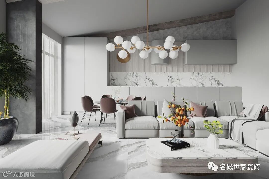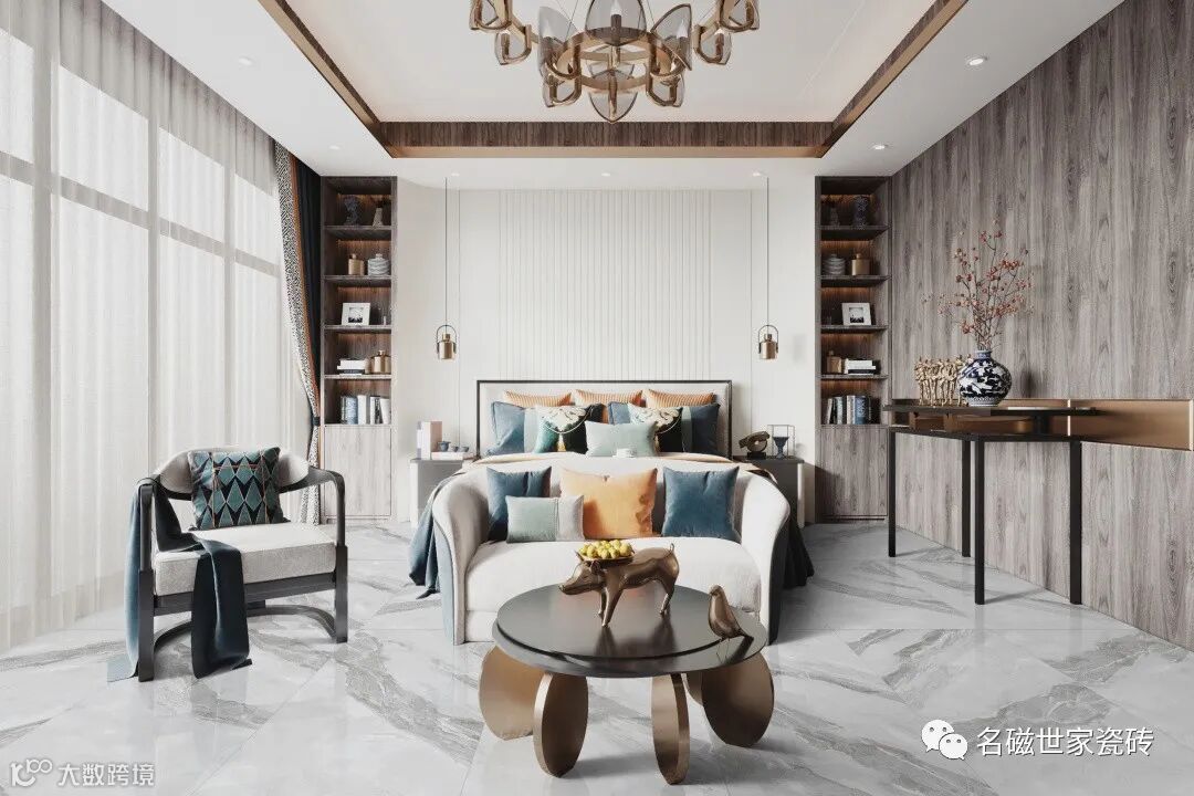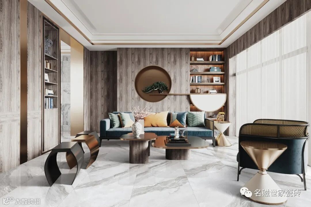 名磁世家750x1500瓷砖装饰空间时,所营造出的空间氛围,无论在材质、花纹、光洁度等方面,都深受设计师和业主的喜爱。
