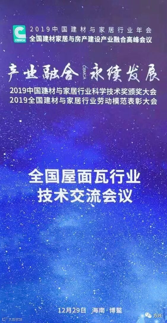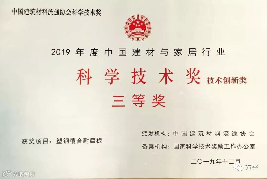 参加会议的有36个委员会的代表,方兴董事长任国勇先生出席此次会议,《塑钢覆合耐腐板方兴瓦板》获得2019年中国建筑材料流通协会建材与家居行业科学技术奖。