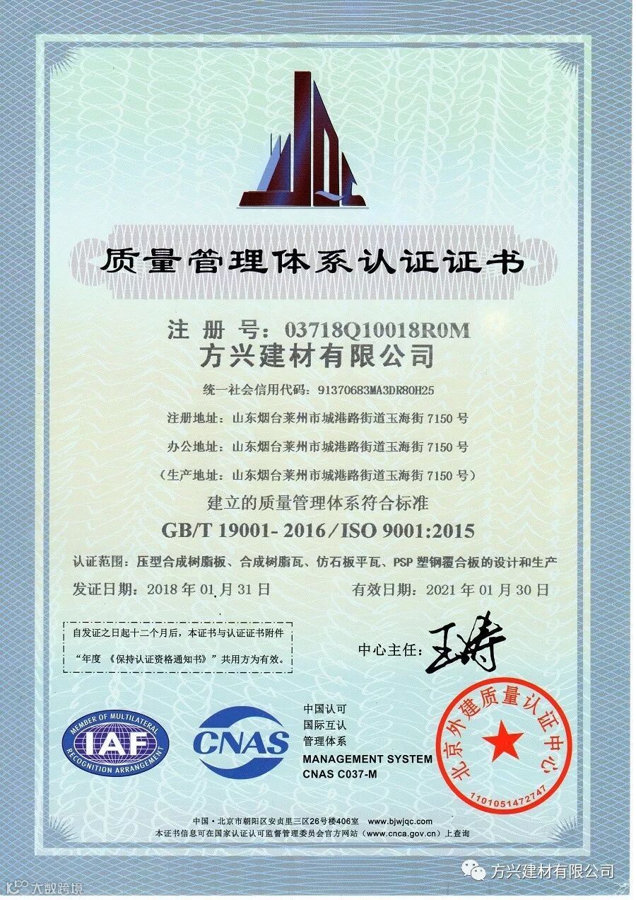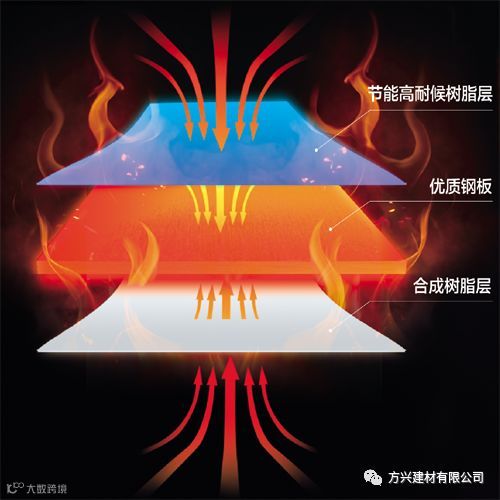 方兴®瓦板(PSP塑钢覆合板)是山东方兴在融汇与美国GE公司合作研发高耐候合成树脂瓦技术成果的基础上,将金属基板与高分子合成树脂膜经高温、熔融、压合工艺覆合而成的一种轻质建筑板材,这种复合型建筑板材同时兼具树脂板与金属板的优异性能。
