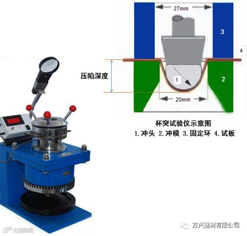 杯突试验:(又叫压陷试验)是指评价漆膜涂层在标准条件下使之逐渐变形后,其抗开裂或与金属底材分离的性能的试验。其测定方法如下: