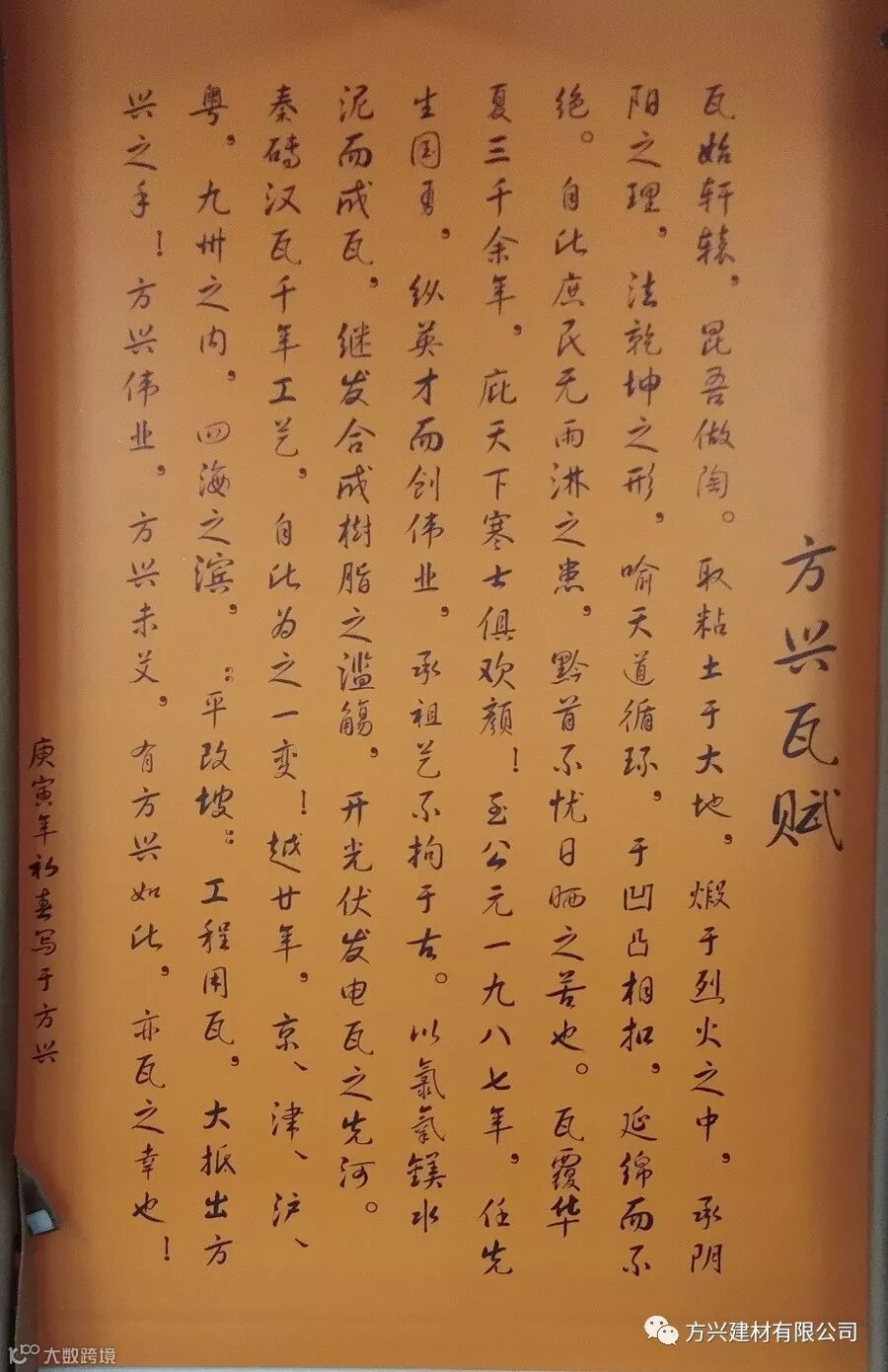 欢迎走进方兴瓦展览馆。方兴“瓦”展览馆也是民间一家以“瓦”为主题的展览馆,这里的实物、图片、文字说明既有历史,也有今天和明天。从瓦的发明发现,经过历史逐步的演变,每个历史阶段都为瓦的发展留下了哪些痕迹?到了今天瓦的特点又发生哪些变化?想借此展览馆给大家呈现一个大体的发展脉络。