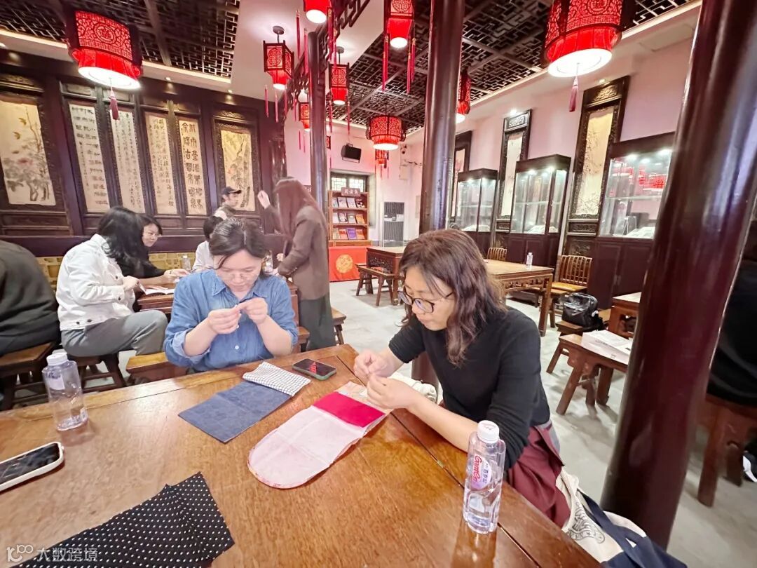 民俗博物馆的活动室里,在非遗大师的指导下,女员工们充分发挥自己的创造力和想象力,将小小的布包细心修剪缝制,每道工序都体现出传统技艺与现代需求的融合创新。最终出炉的作品或清新淡雅,或大气端庄,每一个针脚都是匠心精神的倾注,每一个图案都充满了独特的韵味和个性。大家体会着穿针引线巧手制作的乐趣,感受到中国传统非遗技艺的奥妙,现场气氛温馨热烈,欢声笑语不绝于耳。