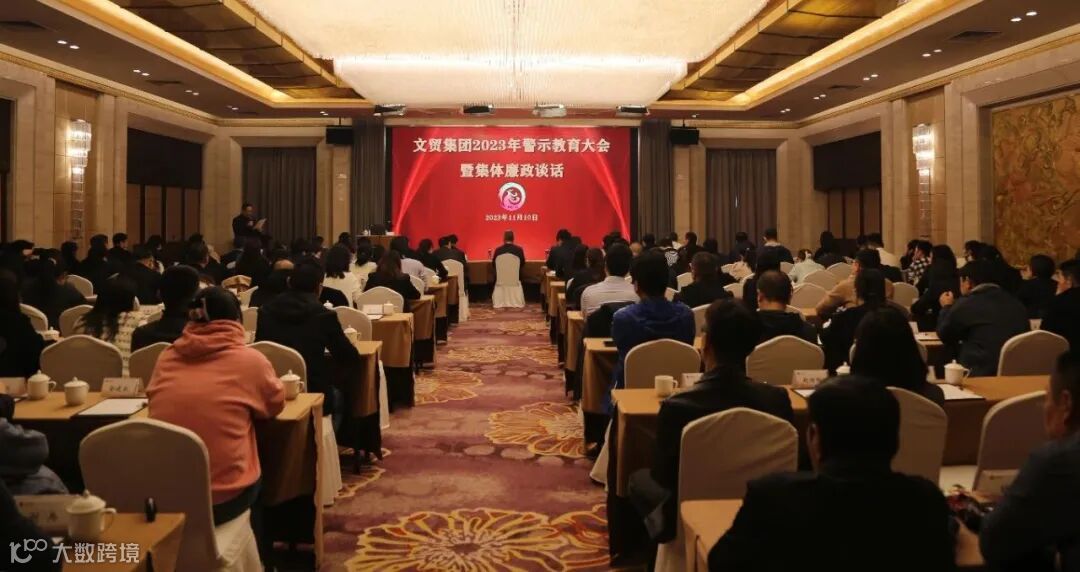 11月10日下午,文贸集团召开2023年下半年警示教育大会暨集体廉政谈话,集团副总经理林海涛出席会议。会议邀请江苏省文投纪委书记朱华明结合文贸集团实际作《扛牢全面从严治党责任 做清廉有为担当国企人》专题讲座。文贸集团党委书记、总经理俞慧洵就落实会议精神作出部署并进行集体廉政谈话。文贸集团纪委书记陈泓江主持会议并宣读《关于敦促限期主动交代违纪违法问题的通告》。