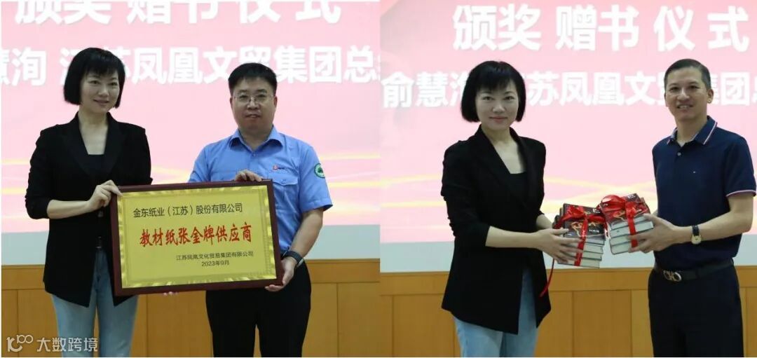 开班仪式上,李云胜对文贸团队的到来表示热烈欢迎,并对金东纸业与文贸集团近20年来紧密、互助、共赢的合作关系给予充分肯定。俞慧洵表示,在文贸集团主业发展中得到了金东纸业的大力支持与帮助,期望双方不断深化合作,拓宽合作领域,共同助力文化纸行业的绿色低碳可持续发展。俞慧洵还为金东纸业颁发了“教材纸张金牌供应商”奖牌。