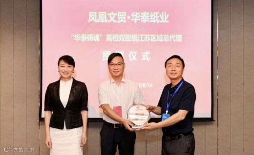 论坛现场,文贸集团与华泰纸业举行新品代理授牌仪式,双方未来将积极推进纸张领域内各项合作。